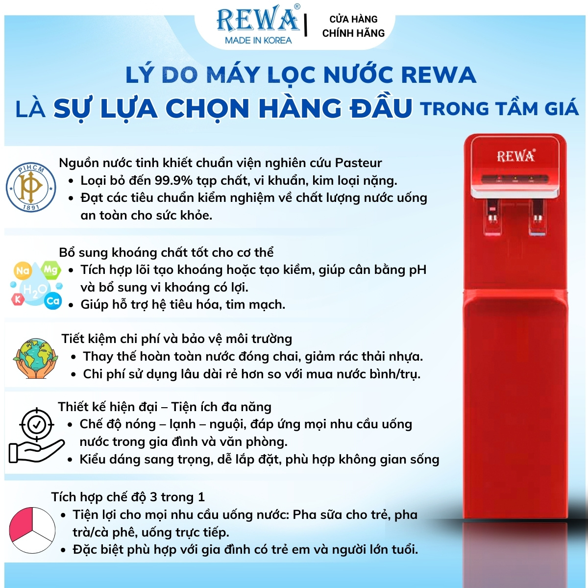 👉 Với công nghệ Hàn Quốc hiện đại, REWA mang đến sự tiện ích toàn diện, chăm sóc sức khỏe và cuộc sống của cả gia đình chỉ trong một chiếc máy lọc nước.