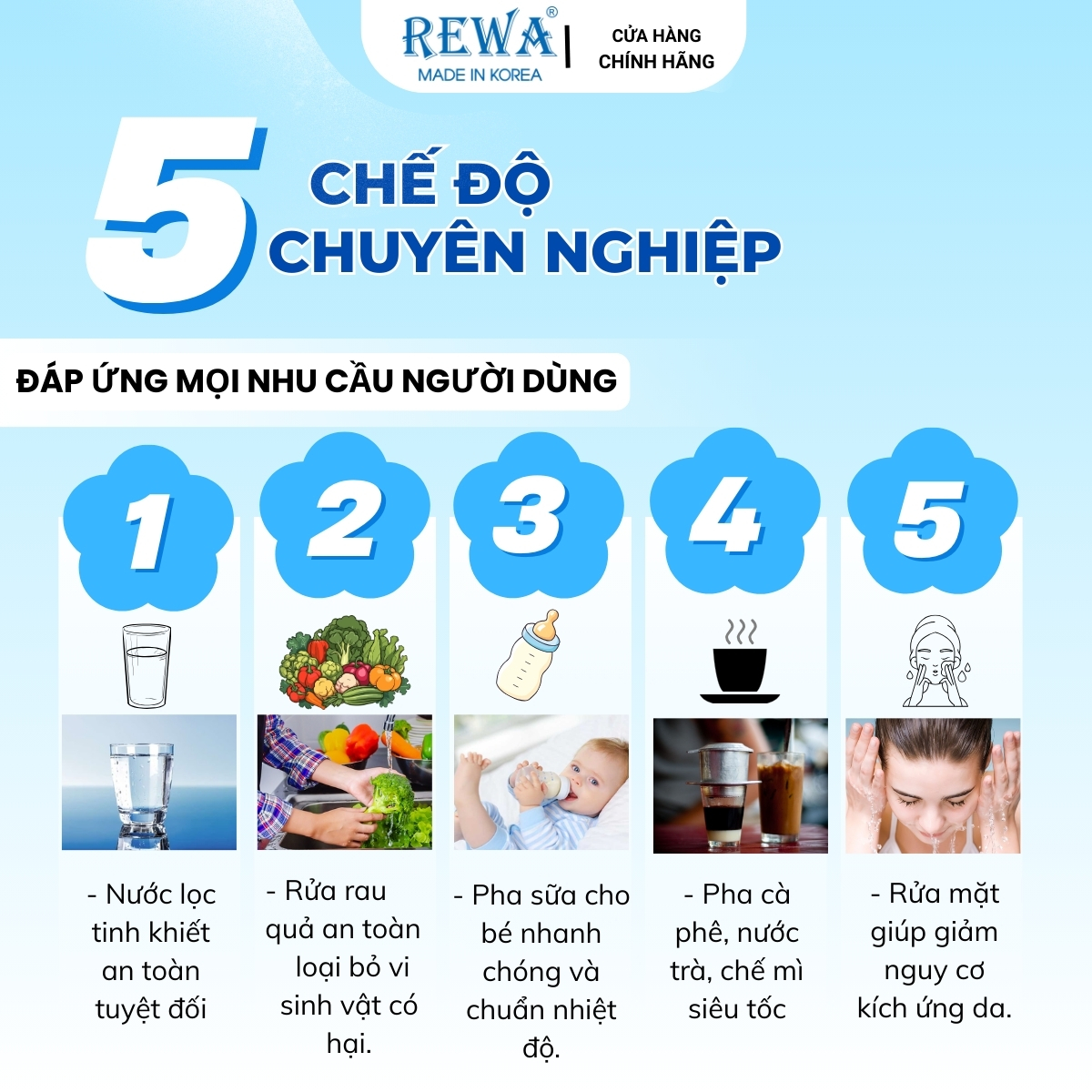 👉 Với công nghệ Hàn Quốc hiện đại, REWA mang đến sự tiện ích toàn diện, chăm sóc sức khỏe và cuộc sống của cả gia đình chỉ trong một chiếc máy lọc nước.