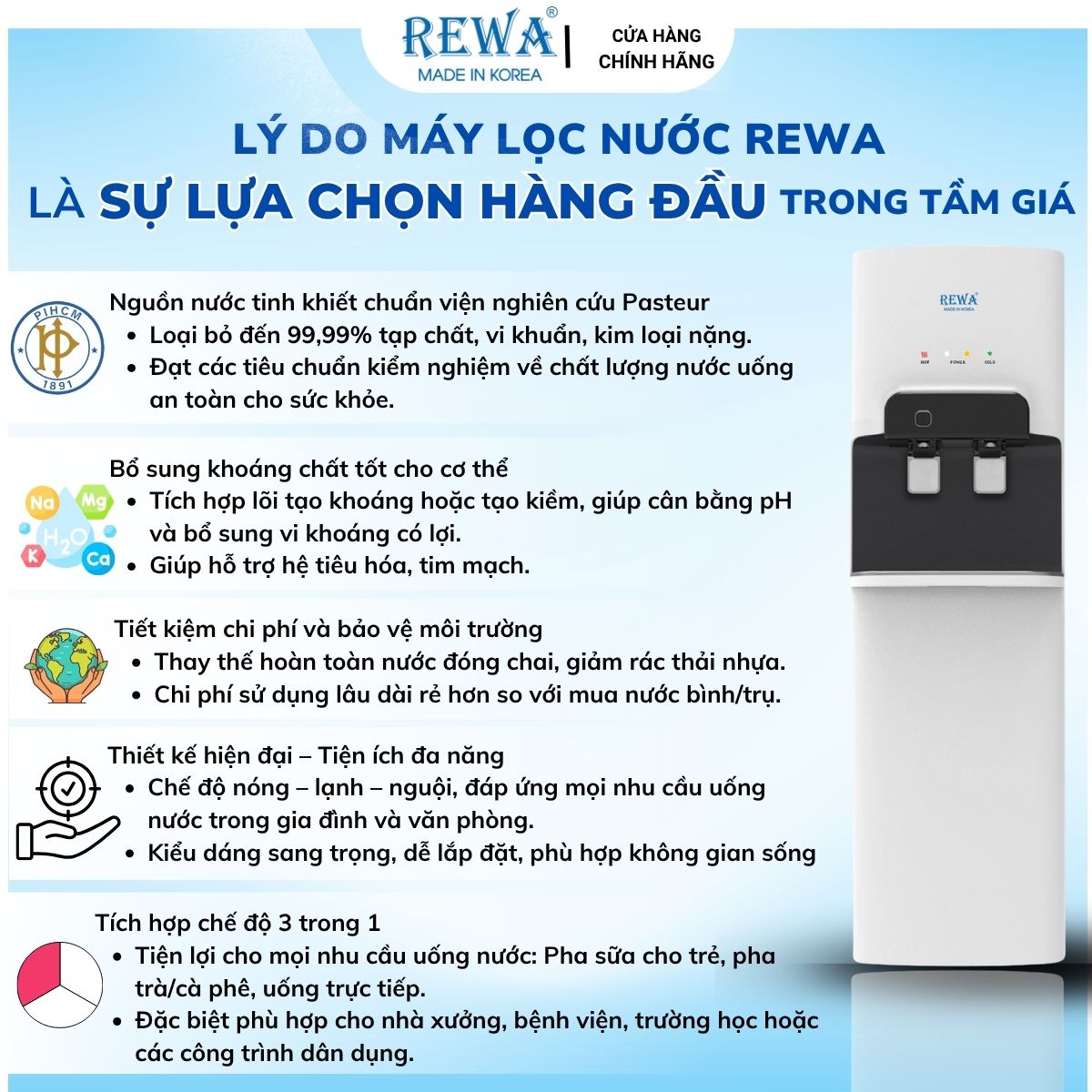 👉 Với công nghệ Hàn Quốc hiện đại, REWA mang đến sự tiện ích toàn diện, chăm sóc sức khỏe và cuộc sống của cả gia đình chỉ trong một chiếc máy lọc nước.
