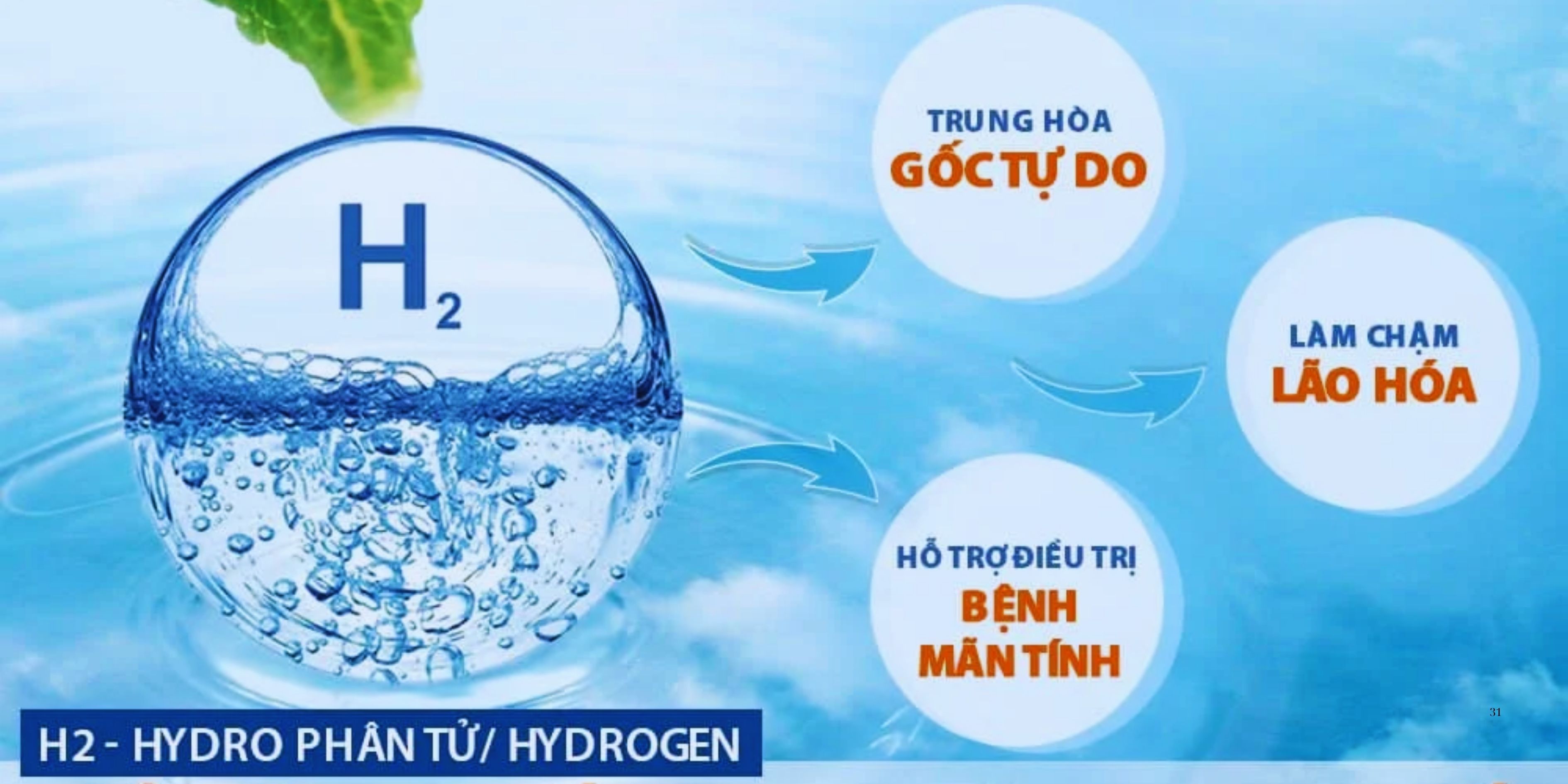 - Nước hydrogen có tác dụng chống oxy hóa mạnh mẽ, giúp ngăn ngừa tổn thương tế bào và làm giảm sự hình thành gốc tự do trong cơ thể, giúp tăng cường sức đề kháng và bảo vệ cơ thể khỏi các bệnh lý liên quan đến tuổi tác và môi trường sống ô nhiễm.
