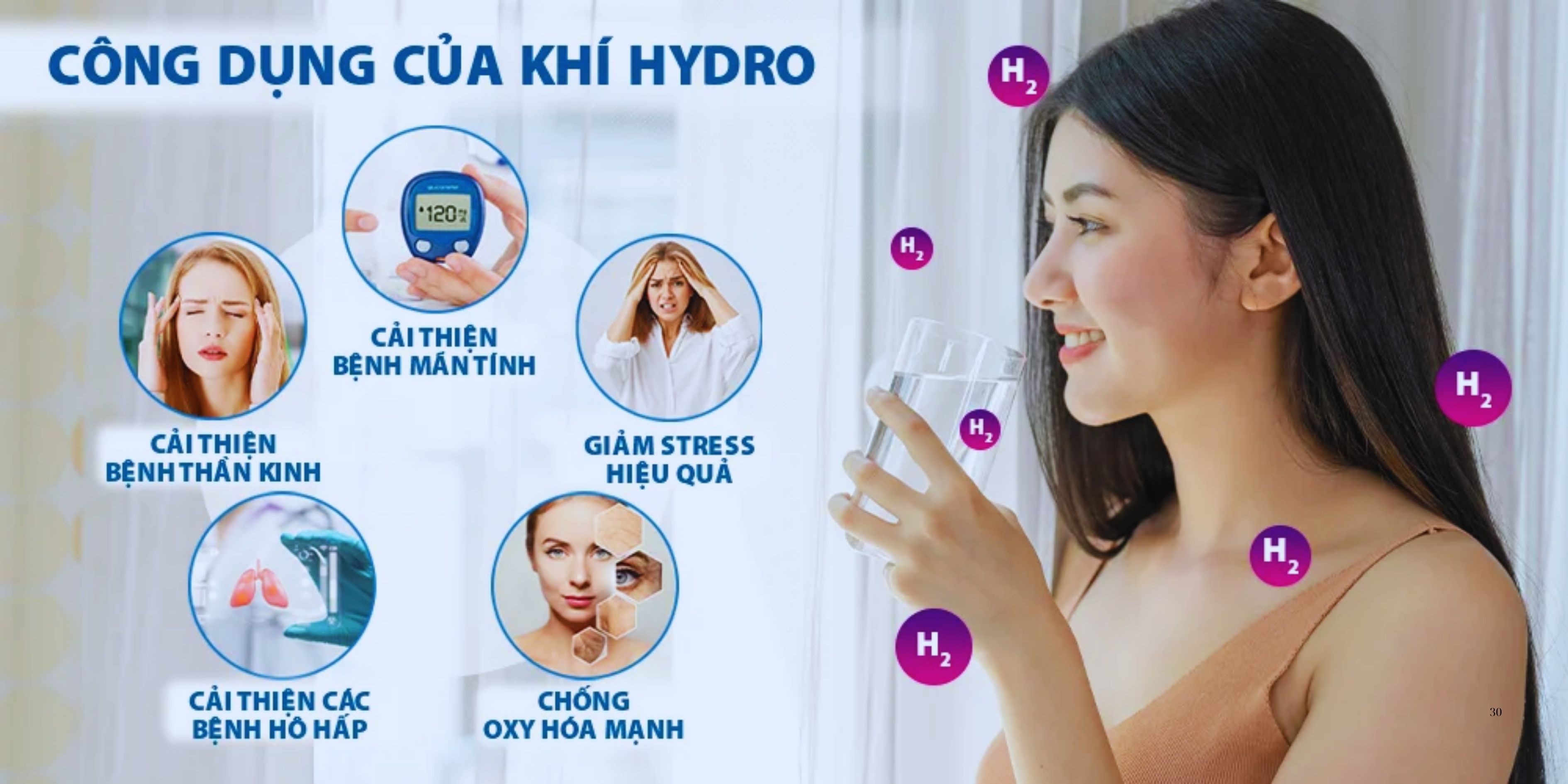 - Nước hydrogen mang đến nhiều lợi ích tuyệt vời cho sức khỏe và tinh thần. Với khả năng chống oxy hóa mạnh mẽ, nước hydrogen giúp cải thiện bệnh mạn tính, hỗ trợ hệ thần kinh và hô hấp, đồng thời giảm căng thẳng, stress hiệu quả. Uống nước hydrogen mỗi ngày còn giúp cơ thể khỏe mạnh hơn, tinh thần thư thái và làn da tươi trẻ.